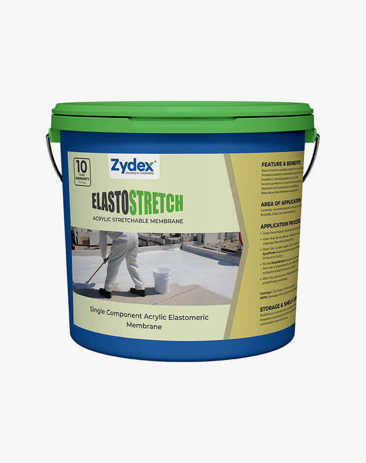 ElastoStretch is a high performance elastomeric roof coating designed to be used along with Zycosil+. It is highly UV durable and has a service life of up to 10 years. It features the ability to bridge cracks up to 1.5 . In combination with Zycosil+, ElastoStretch provides a waterproofing system that is a combination of a penetrative barrier with a seamlesstopcoat resulting in superior performance.